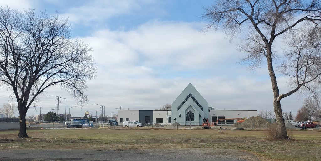 Our old church building (left) that has served us well, and our new church building (right) being constructed